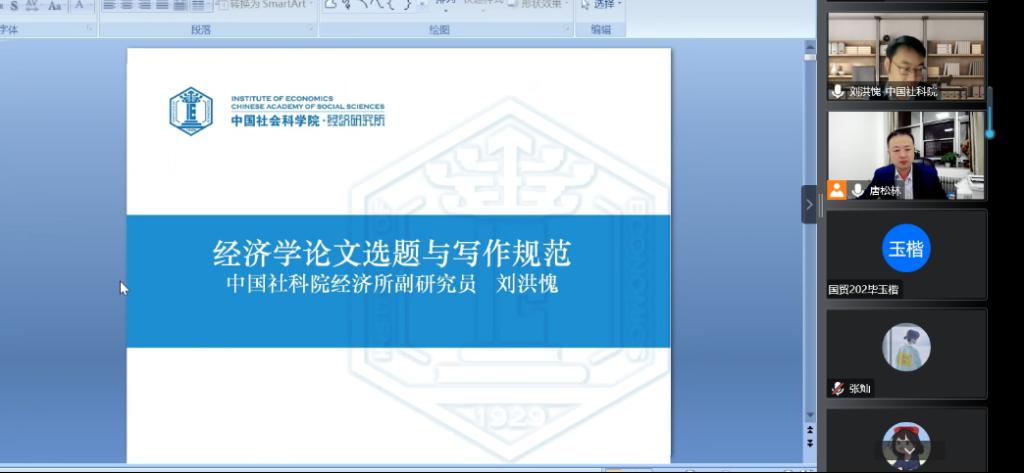 2022年11月3日,应学院邀请,中国社会科学院经济研究所副研究员、《经济学动态》责任编辑刘洪愧通过线上会议为环球网页版登录入口师生作了“经济学论文选题与写作规范”的专题报告,院长唐松林主持了会议。