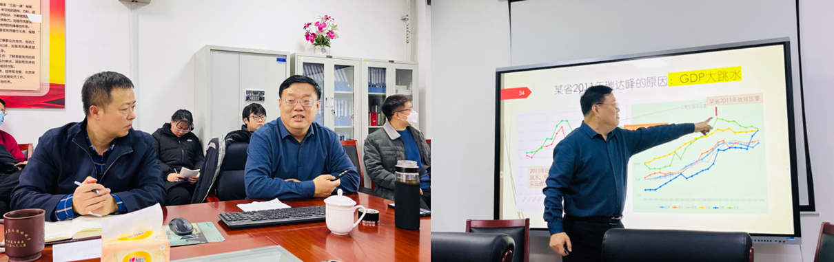 在智库成果撰写的专题讲座中,周勇教授以“找问题让数据说话——撰写呈阅件的体会”为题,基于已获批的“关于碳达峰时间点和峰值研究”和“事先确保2029年实现碳达峰并力争2035年建成现代化强省”呈阅件的核心内容,对智库成果撰写的选题、写作技巧、呈阅渠道等方面开展了详细的介绍。他强调,写呈阅件不能是为了“获批”而写,而是需要结合社会现实问题,在对现实问题进行多方面、全方位、整体性的深入分析和论证后,就研究发现的问题提出解决方案并形成政策建议文件。