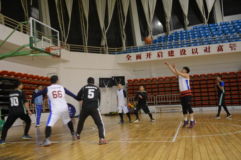 为丰富教职工的业余生活,提高教职工篮球技术水平,加强体育锻炼,促进教师间感情,11月27日下午五点三十分,我院教职工代表与外国语学院教职工代表于体育馆开展篮球赛。