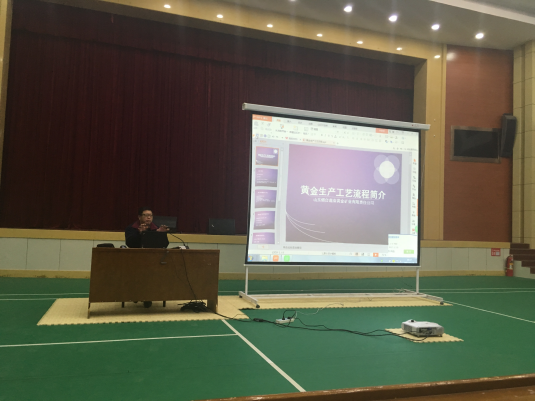 首先,鑫泰公司王经理给同学们和各位老师介绍了黄金生产工艺流程,同学们认真记录了黄金在采选、冶炼等环节的相关知识,受益匪浅。