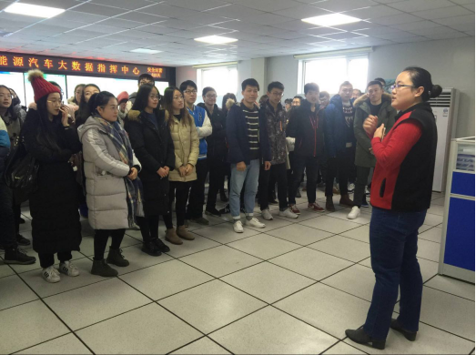 首先,华鼎新能源汽车公司张总带领同学们参观了公司的核心部门——大数据指挥中心,并对烟台市范围内所有新能源汽车的分布数据进行了详细介绍。同学们认真听取了介绍,提高了自己对新能源汽车的认识。