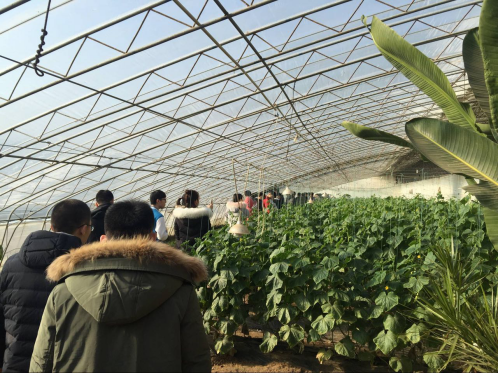 在对华鼎新能源汽车公司调研结束后,能源经济教研室老师又带领学生参观了牟平高陵生态产业园。该产业园又名烟台市高陵生态果蔬产业有限公司,是集生态农业、旅游观光、休闲度假、田园养老、科研医疗于一体的现代都市生态产业园区。园区位于烟台市牟平区高陵水库水源地保护区,规划建设2万6千亩生态果蔬基地。2011年,高陵生态产业园建设蔬菜大棚100个,已全面投入生产。2012年,高陵生态产业园新建设科技蔬菜大棚6个。几年来,园区获得国家级和省级无公害蔬菜生产基地,烟台市政府指定“菜篮子”工程基地等荣誉称号。