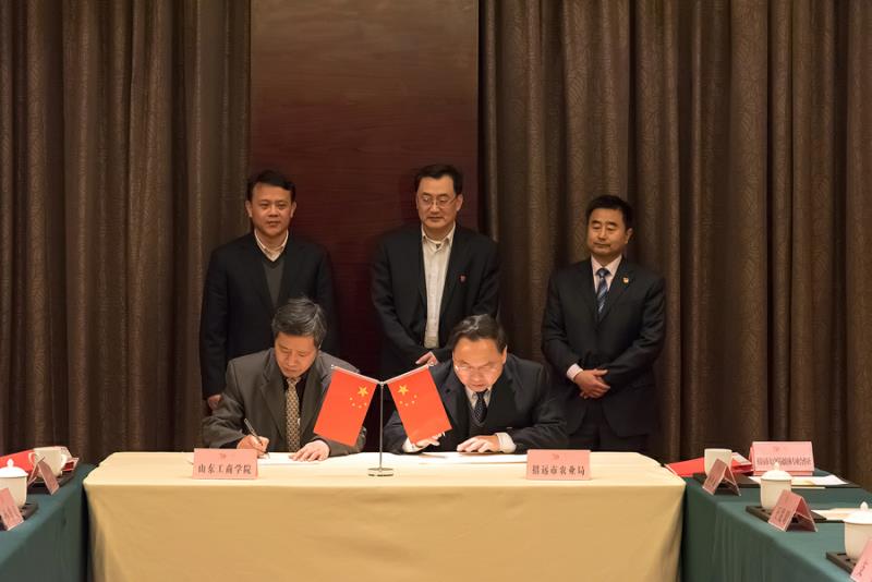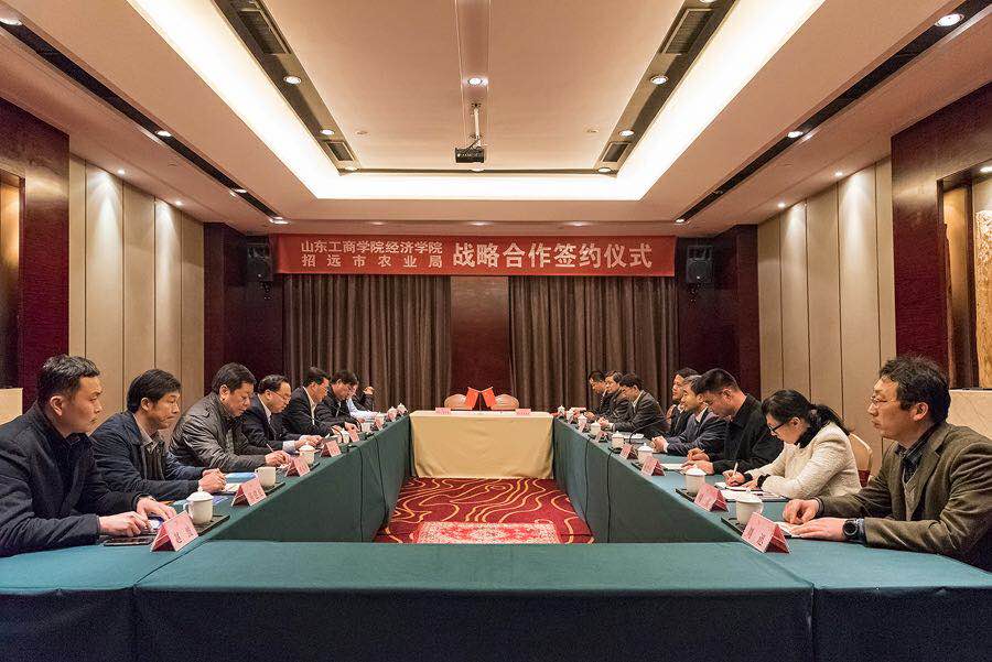 1月19日,环球网页版登录入口与招远市农业局战略合作框架协议签约仪式在招远市举行。山东工商学院副院长刘向锋、招远市副市长王国良出席签约仪式。