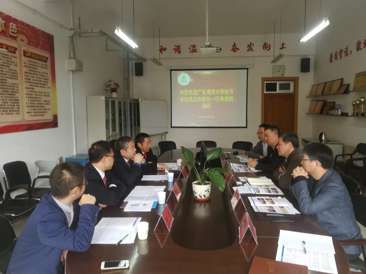 王发明院长对来宾的到访表示热烈欢迎,并从学校财富管理特色建设、学院历史、师资队伍、学科发展、专业设置、教学科研成果等方面对我院情况进行了介绍。居占杰院长也介绍了广东海洋大学以及环球网页版登录入口的变革发展史、学科管理以及专业设置,随后双方就各项工作进行了经验交流和讨论,认为双方在学科发展以及研究生招生等方面可以加强交流合作。