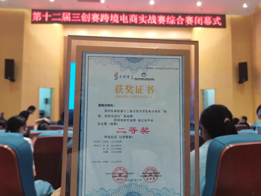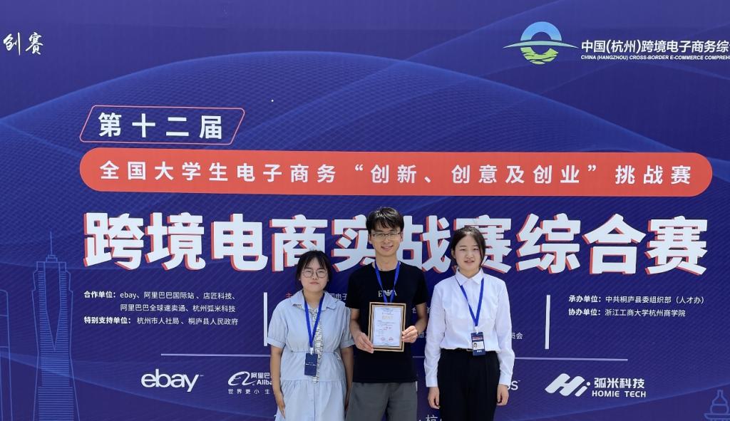 2022年7月17日,第十二届全国大学生电子商务“创新、创意及创业”挑战赛跨境电商实战赛在浙江省杭州市落下帷幕。由环球网页版登录入口专业教师李德震指导的张家甜、赵琦、张潇、闫泰毓四名学生组成的参赛队伍“超能历险队”入围跨境电商实战赛独立站赛道全国10强,荣获综合赛(国赛)二等奖。
