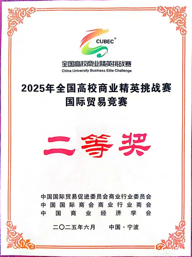 2025年6月7日,第十四届全国高校商业精英挑战赛国际贸易竞赛(国际贸易业务模拟赛道)总决赛在浙江省宁波市国际会展中心正式开赛。此次参加比赛的队伍有408支、参赛师生超过3300人。由我校环球网页版登录入口王萌莎和姜书竹两位老师指导,由刘淑琪、秦棋书、孟硕、程江皓、陈德晴和李睿玥六名学生组成的“解忧百纳队”,获得了烟台张裕葡萄酿酒股份有限公司的鼎力支持,在本次全国总决赛中脱颖而出,斩获二等奖。