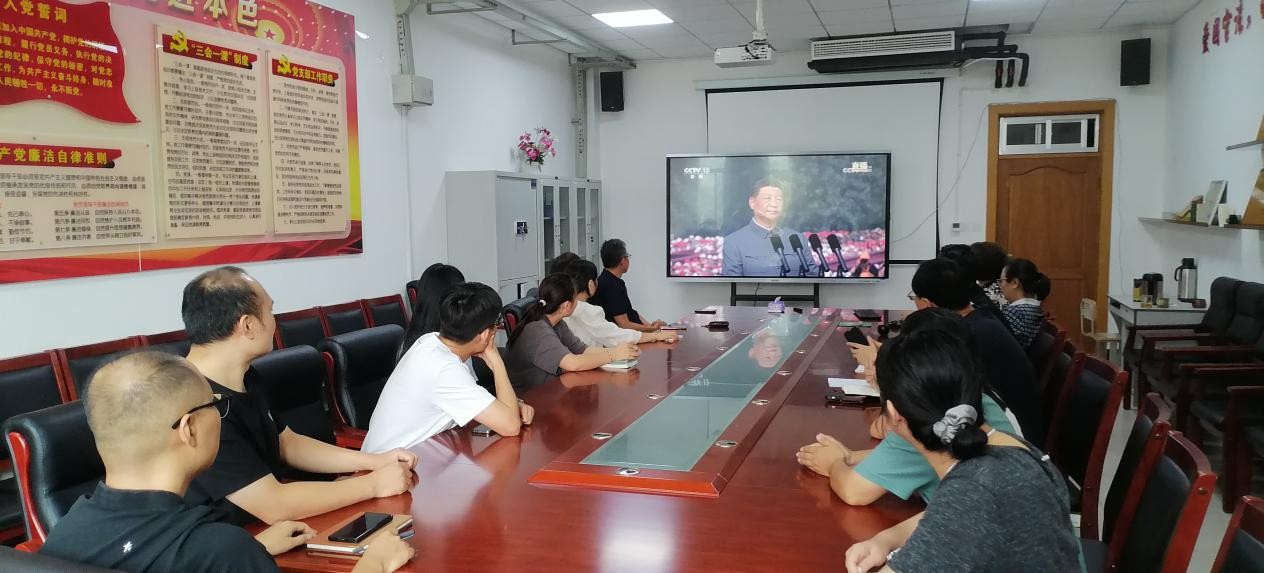 9月3日上午,纪念中国人民抗日战争暨世界反法西斯战争胜利80周年大会在北京隆重举行。学院党委高度重视,党委班子成员、党支部书记及教职工党员代表在5312室集中收看了大会实况直播,认真聆听习近平总书记的重要讲话。