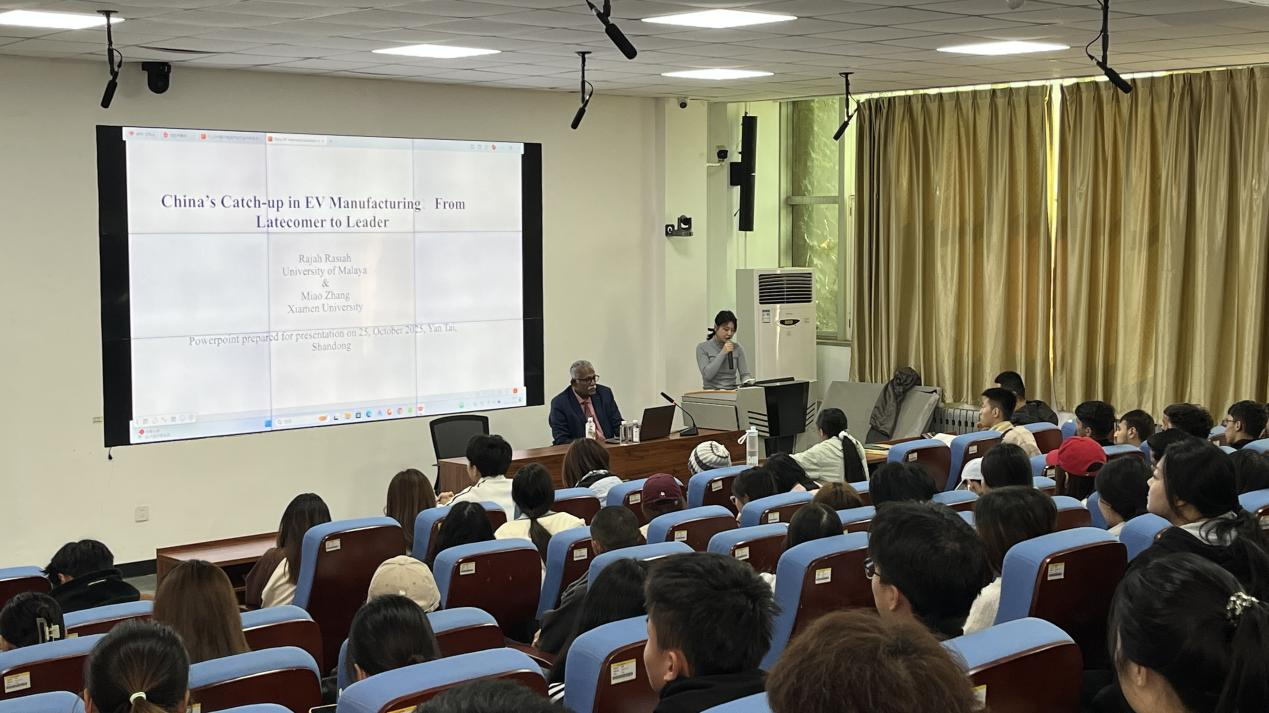 10月25日上午,由山东工商学院环球网页版登录入口主办的“中国在电动汽车行业中的进步:从后发者到领导者”专题论坛,在山东工商学院东校区2106教室举行。马来亚大学亚欧研究所经济学杰出教授、执行所长DR.Rajah A/LRasiah受邀担任主讲嘉宾,学院师生及相关领域研究者参与了此次学术交流活动。环球网页版登录入口王倩怡副教授致开幕词。