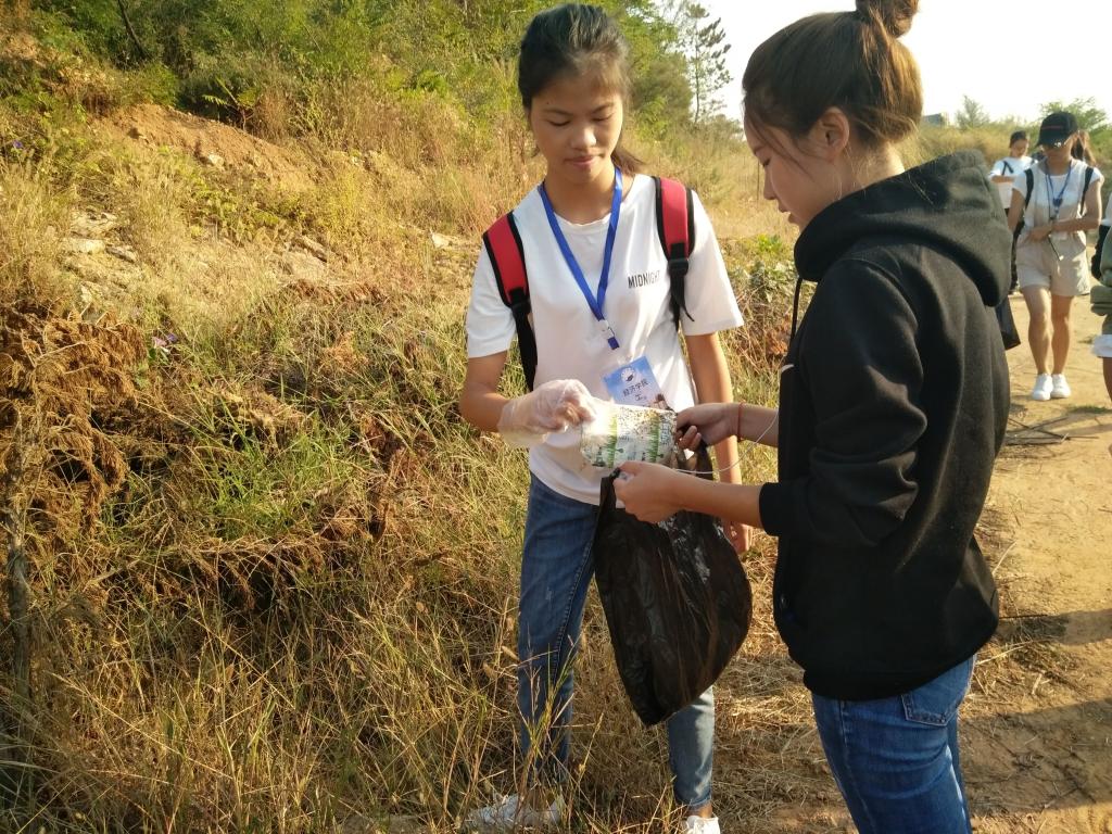 ,环球网页版登录入口青年志愿者协会及实践部来到凤凰山进行捡垃圾爱心活动,青志部长赖柔文,实践部部长刘茹带领各自部门干事前往。