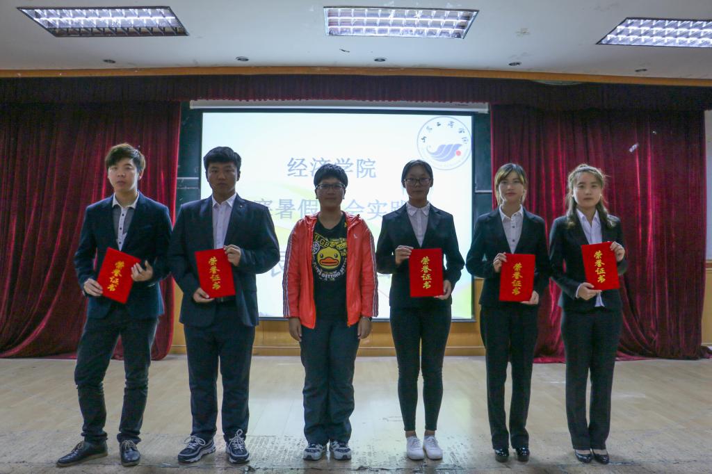接着,主持人宣布社会实践优秀团队和个人名单,并由环球网页版登录入口团总支书记于向科,学生会主席吴文静,学生会秘书长刘海霞,学生会副主席王盛敉给获奖团队及个人颁奖,并合影留念。