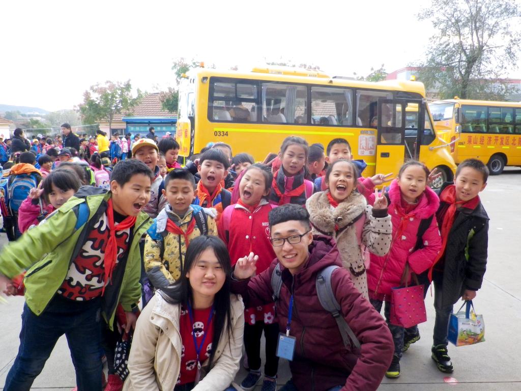 在等校车的过程中,志愿者们帮忙整理队伍,维持秩序,小可爱们都非常的不舍得。情义千缕,我们真心一颗。