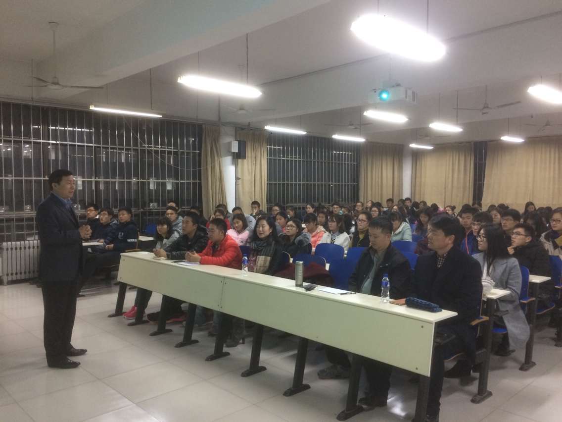 2016年11月23日晚七点,烟台明远家纺公司董事长陈义忠作客环球网页版登录入口,为我院14级学生做国际贸易专题报告。参加报告会的还有我院副院长唐松林,创业学院周金刚老师。