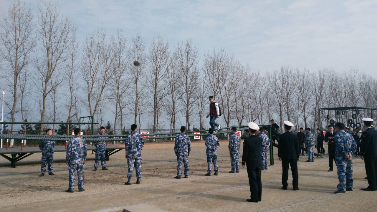 师生们在飞行学院政委王长超的陪同下,在讲解员的讲解和引导下,参观了海军航空工程学院的院史博物馆,了解到了这所军事院校的历史发展历程,深刻体会到军事院校在“军事强国”中的重要作用。随后,全体师生参观了飞行学院的学院宿舍,整齐、划一、干净、整洁的宿舍让同学们大为震撼,同学们纷纷赞叹并表示要向他们学习;同学们来到了飞行员训练场,观看了飞行学院学员为我们带来的防眩晕滚轮表演,一些同学在专业的指导下进行了尝试,体会飞行员的日常训练。
