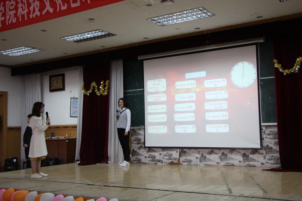 比赛由环球网页版登录入口文艺部带来的一段热舞开场,在热烈的气氛下开始了比赛的第一环节——你说我来猜。此环节每组有两位成员进行,一位表演,另一位根据表演内容猜词。表演的同学使出浑身解数,英语表达和肢体语言共用,猜词的同学开动脑筋,配合默契,整个环节气氛紧张且活跃。