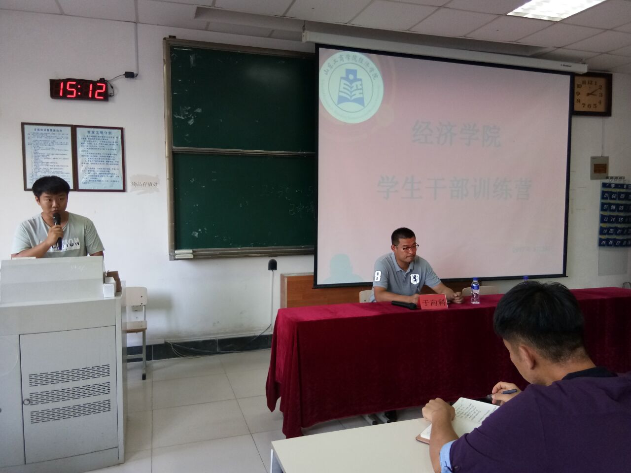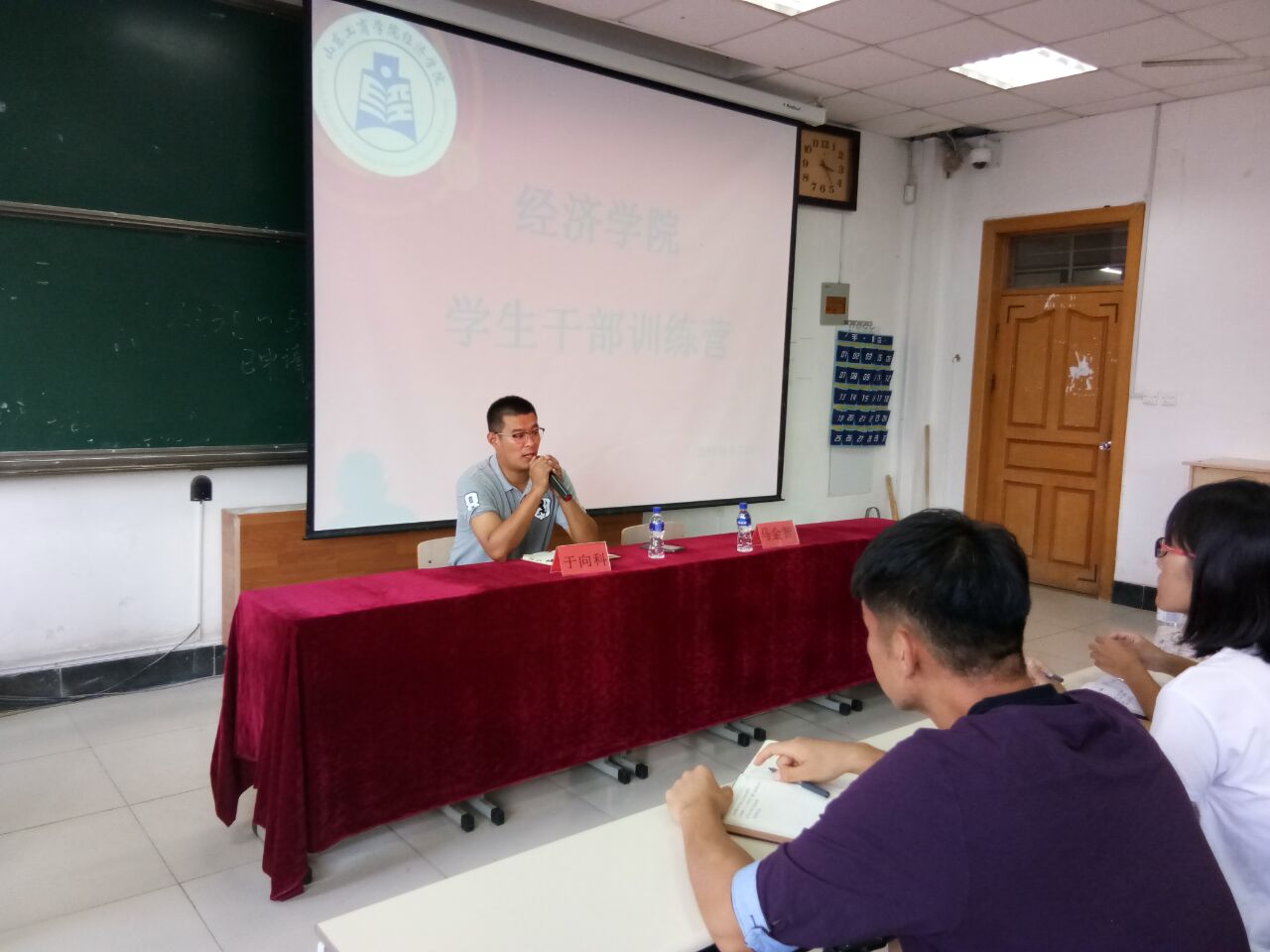 2017年9月24日下午两点四十五,环球网页版登录入口第三期学生干部训练营在5教201室顺利开展。环球网页版登录入口团总支书记于向科出席本次训练营,环球网页版登录入口学生会常委、部长、17级新生助导、15和16级班委以及17级各班临时负责人参加训练营。