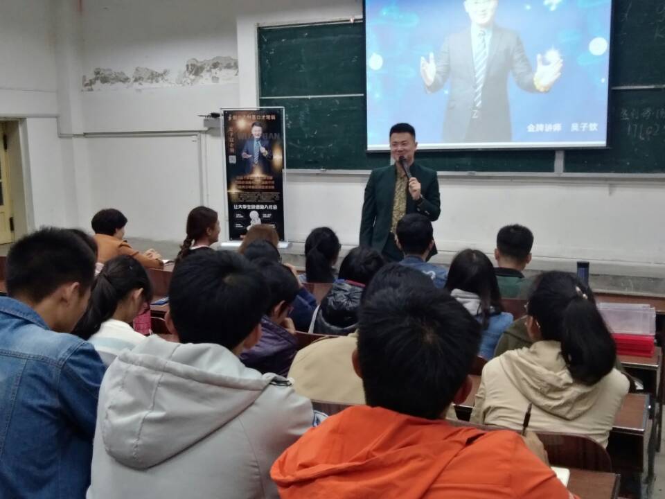 2017年10月21日晚上七点,环球网页版登录入口在二教208室举办了山商环球网页版登录入口大学生职场精英口才人文讲座。主讲人是中国卡耐基教育金牌讲师吴子钦老师。环球网页版登录入口团总支书记于向科出席了此次讲座,环球网页版登录入口16级、17级部分学生参加讲座。