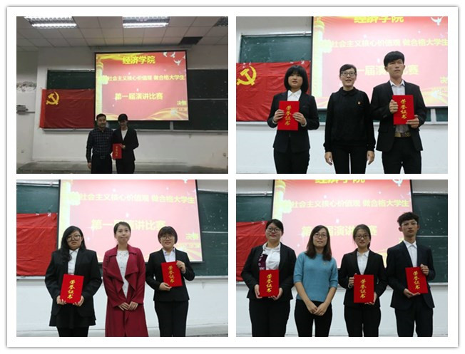 经过两个小时的激烈角逐,最终国贸172班李悦荣获一等奖,经济172班徐苗苗和经济162班孙兴福获得二等奖,经济171班韩刚、经济163班王青和经济163班钟云获得三等奖,能源171班米天添和国贸162班陈敏华获得优秀奖,分别由到场嘉宾和评委为获奖选手颁奖。随后,环球网页版登录入口党总支书记马金智对参赛选手的表现从着装、内容等方面提出了几点建议,并鼓励各个班级积极组织开展此类活动,锻炼同学们的演讲和表达能力。