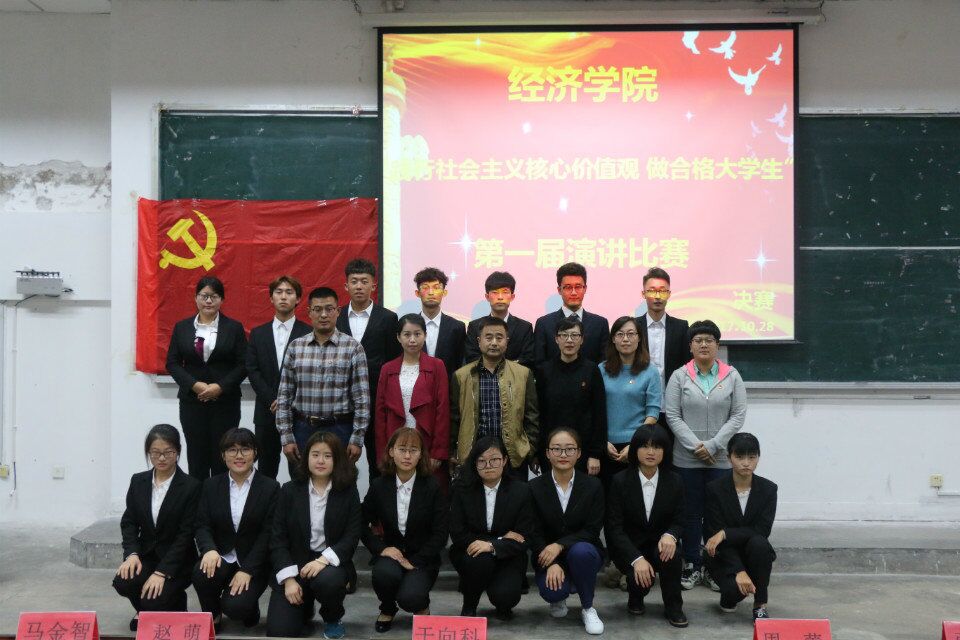 2017年10月28日下午三点,环球网页版登录入口第一届“践行社会主义核心价值观——做合格大学生”演讲比赛决赛在二教208室隆重举行。本场比赛的评委由环球网页版登录入口党总支副书记周蕾、环球网页版登录入口团总支书记于向科、环球网页版登录入口第二党支部书记张丽淑、环球网页版登录入口第三党支部书记及17级辅导员赵萌以及环球网页版登录入口第十四届学生会主席吴文静担任。环球网页版登录入口党总支书记马金智莅临比赛现场。环球网页版登录入口学生会常委、部长以及17级全体新生前来观看比赛。