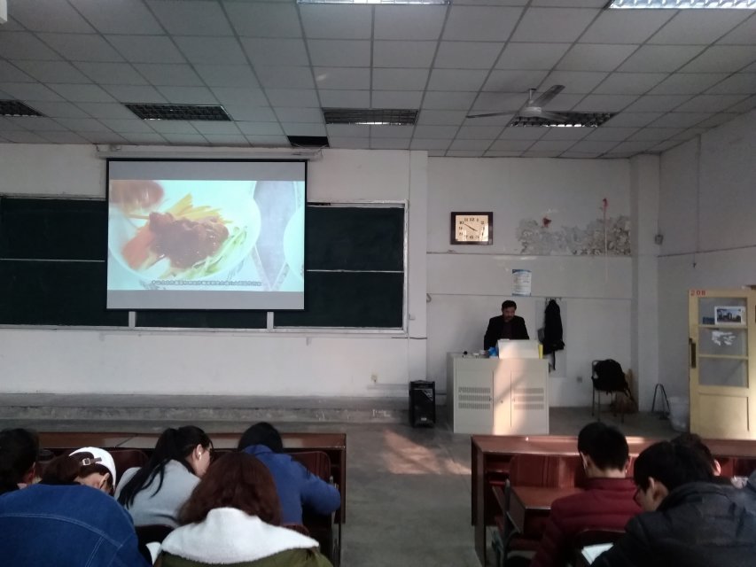 会议以一段介绍福山美食——福山大面的视频开始,引出了本次讲座“民俗与饮食”的主题。首先,权老师向同学们介绍了传统礼仪,教育我们无论是在平日交往中还是在正式场合,对一个人的称呼都要恰如其分,同时要注意餐桌礼仪,要讲礼貌,懂礼数。