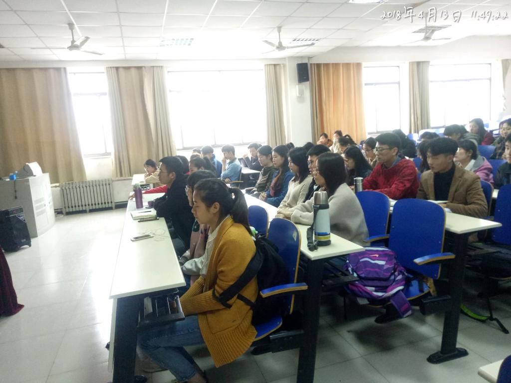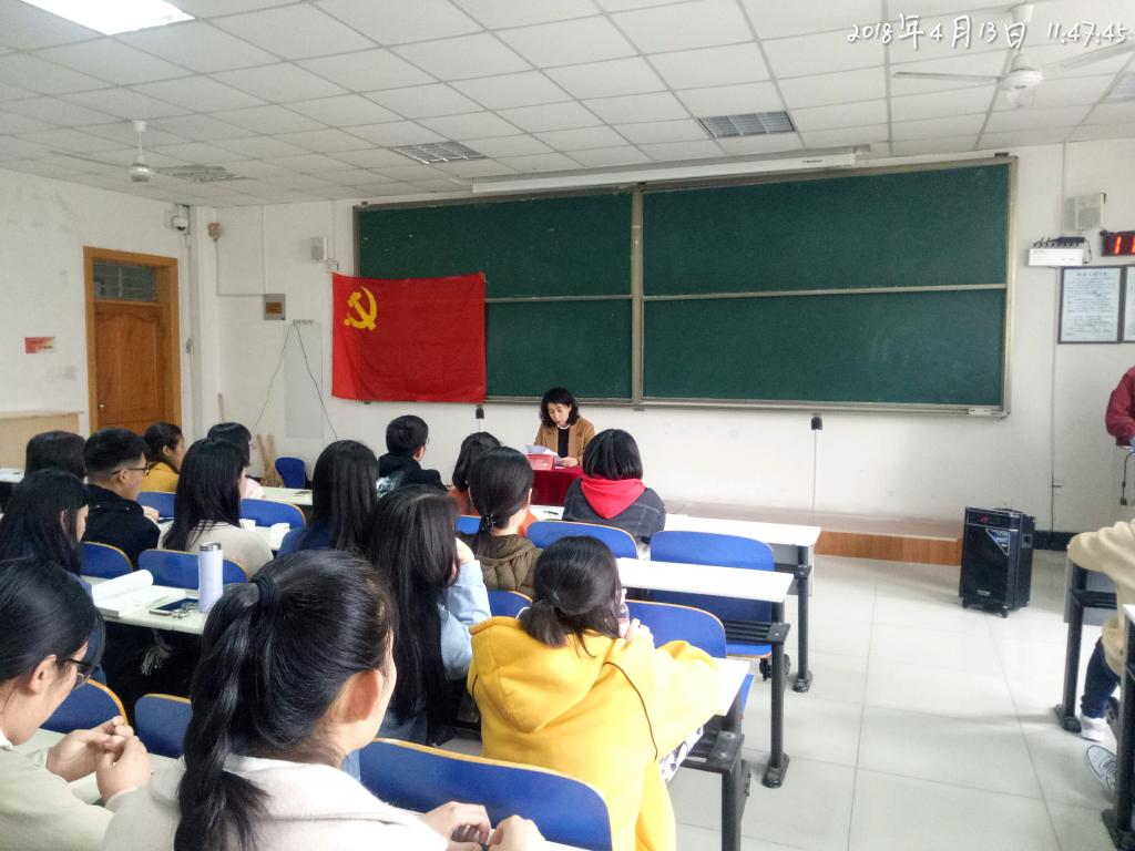 2018年4月13日上午十一点四十分,环球网页版登录入口2018年第一期入党积极分子培训班开班仪式在5教413室召开,第三党支部书记赵萌主持此次开班仪式,52名入党积极分子参加。