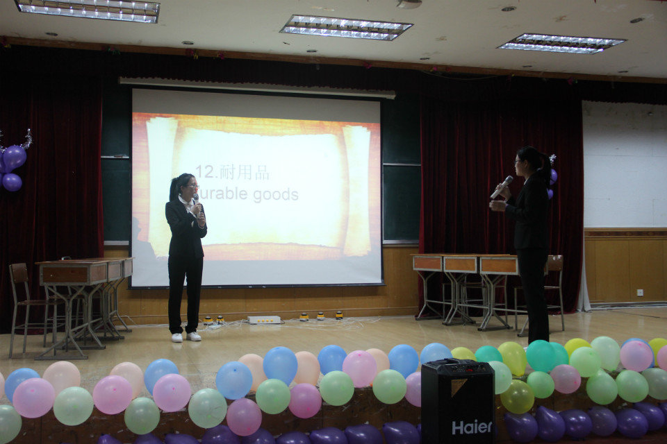 伴随着优美的音乐旋律,活动于19:00 准时开始。首先,播放了六支队伍的加油视频,比赛分为单词猜猜猜、耳听八方、知识抢答和我是演说家四个环节。活动有序进行,各参赛组的实力在伯仲之间,竞争相当激烈。此次比赛意在考察同学们的反应能力、信任度、语言表达能力、随机应变能力及团结协作能力等等,大赛评委秉着公平,公正的原则慎重地为每一位选手打分。比赛环节结束后是与现场观众的互动抢答环节,同学们都积极踊跃的举手抢答,现场气氛热烈。