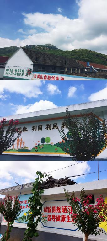 这是我在2017年暑期实践离开山角村时写下的一段话。没想到2018年的夏天,我又来到了这个小村庄。走在熟悉又不熟悉的街道之上,只觉得一年不见,山角村的变化实在是令人感慨。变化最大的就是村里的街道了,去年只有主干道是水泥路,其他的小巷还都是一下雨就很泥泞的土路;而今年所有的大街小巷都变成了崭新的水泥路,干净清爽,主干道每户人家的外墙都画上了彩色的图画及标语,一派社会主义新农村的祥和景象。