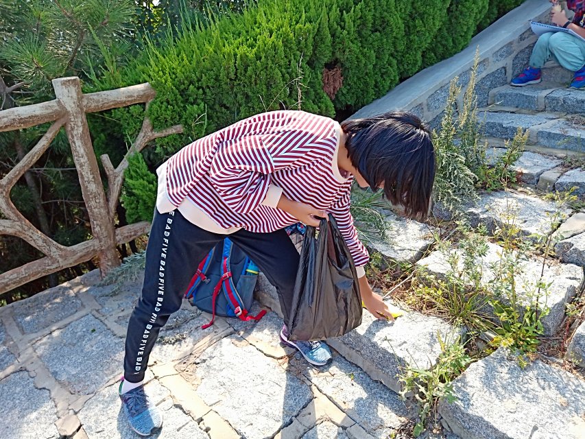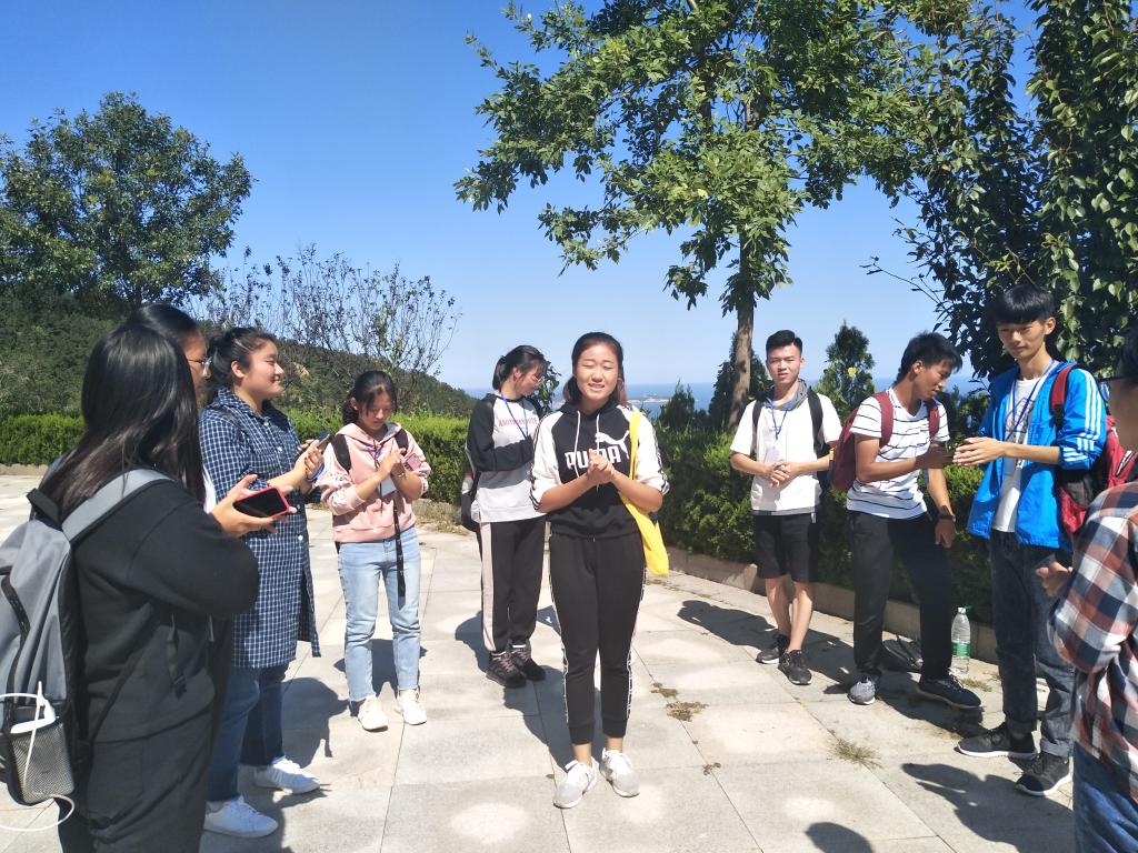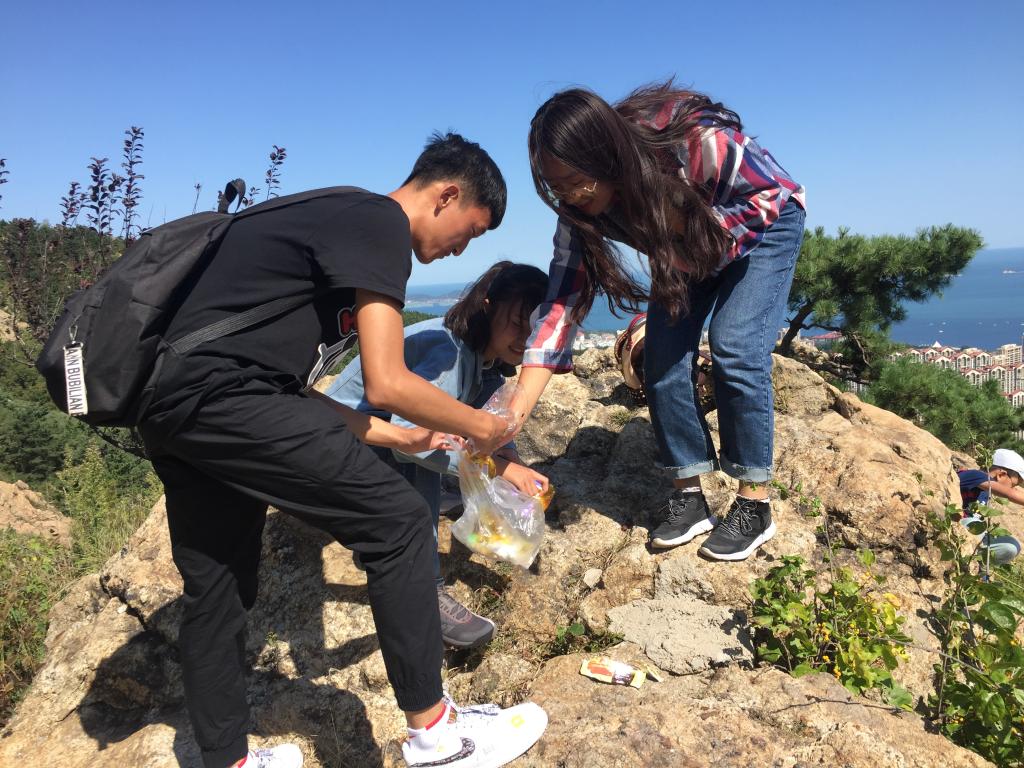 人员到齐后,所有成员在部长们的带领下前往岱王山。在岱王山脚下,各部长为部员们发放垃圾袋,正式开始本次的环保之行。活动过程中,同学们放下初入学时的羞涩,所有成员互帮互助,沿途充满欢声笑语。同时,他们认真搜寻游客遗落的果皮纸屑,将分配的任务在短时间内高效完成,并在山顶进行了互动游戏。