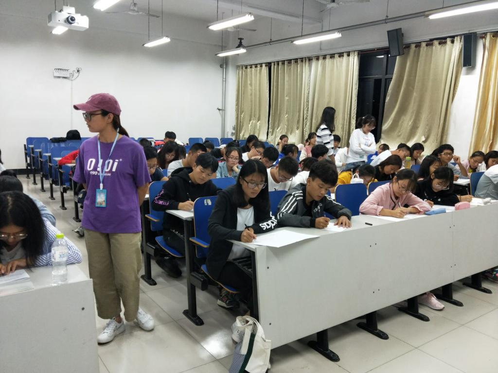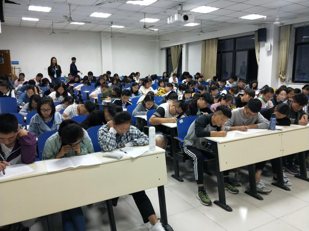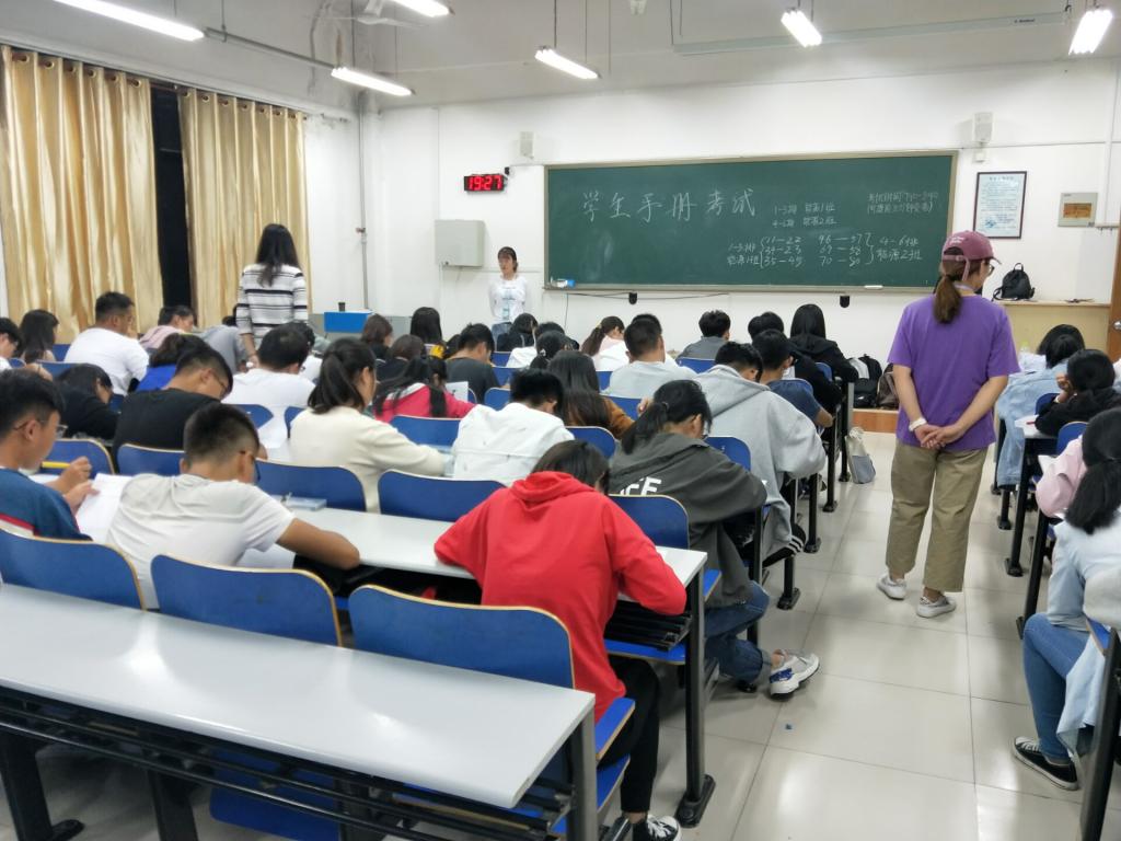 2018年9月25日晚上七点十分,环球网页版登录入口2018级新生学生手册考试在五教206室、401室、609室有序展开,我院全体新生参加考试,学生会各部门部长担任监考人员。