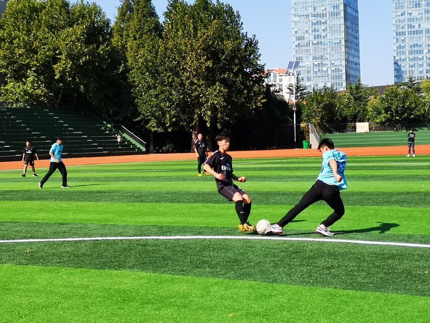 比赛开始之前,各队球员蓄势待发,旗鼓相当。天气微凉,但与之相反的是球员们高涨的热情。比赛开始,双方球员都紧密配合,默契的传球,紧张而有节奏;防守、反击,使双方不分高下,比赛激烈的进行着。渐渐的,经济学球员将比分拉开。双方球员斗志昂扬,在中场休息时互相加油打气。下半场开始,双方队员更是使出浑身解数,国际经济与贸易专业球员奋力反击,不甘示弱。最终,国际经济与贸易队惜败经济学队。