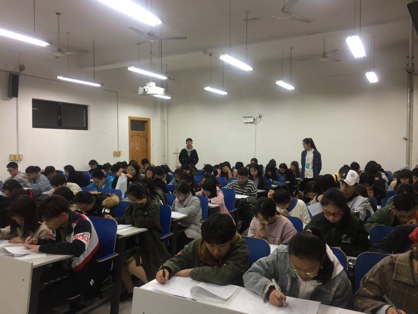 本次考试的内容是考查2018级大一新生对《学生手册》的认识,考试采用笔试方式。在正式考试前,监考人员把考卷分发下来,同时也和同学们讲解考场秩序。在试卷分发下来后,同学们埋头作答,认真书写,经过一个半小时的答卷,最后同学们有秩序地将考卷交给监考人员。