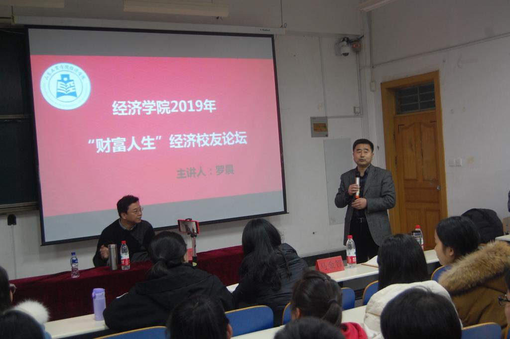 2月28日下午,环球网页版登录入口“财富人生”经济校友论坛(第一期)于五教501室开讲。中澳经贸文化发展促进会副会长,新(加坡)中文化交流协会副秘书长罗晨先生担任主讲。论坛由党总支书记马金智主持。