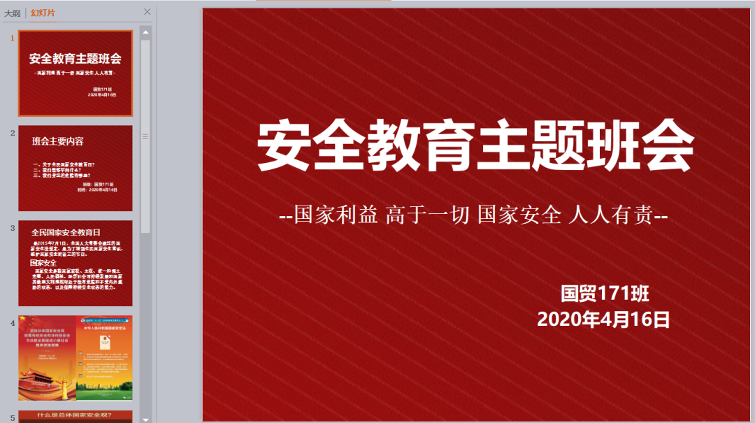 国贸171班:ppt讲解并播放总体国家安全观公益宣传片