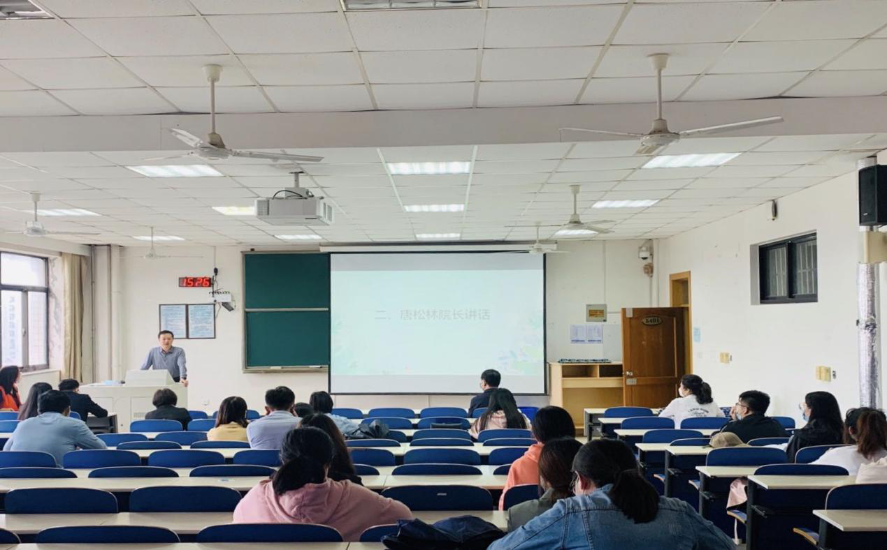 副院长唐松林针对返校后的学习生活,尤其是毕业生面临的论文答辩、就业应聘、生活安排等问题做了解答,要求同学们要做勤学奋进的先行者,尽快调整状态融入角色,认真做好学业规划,圆满完成学业任务。