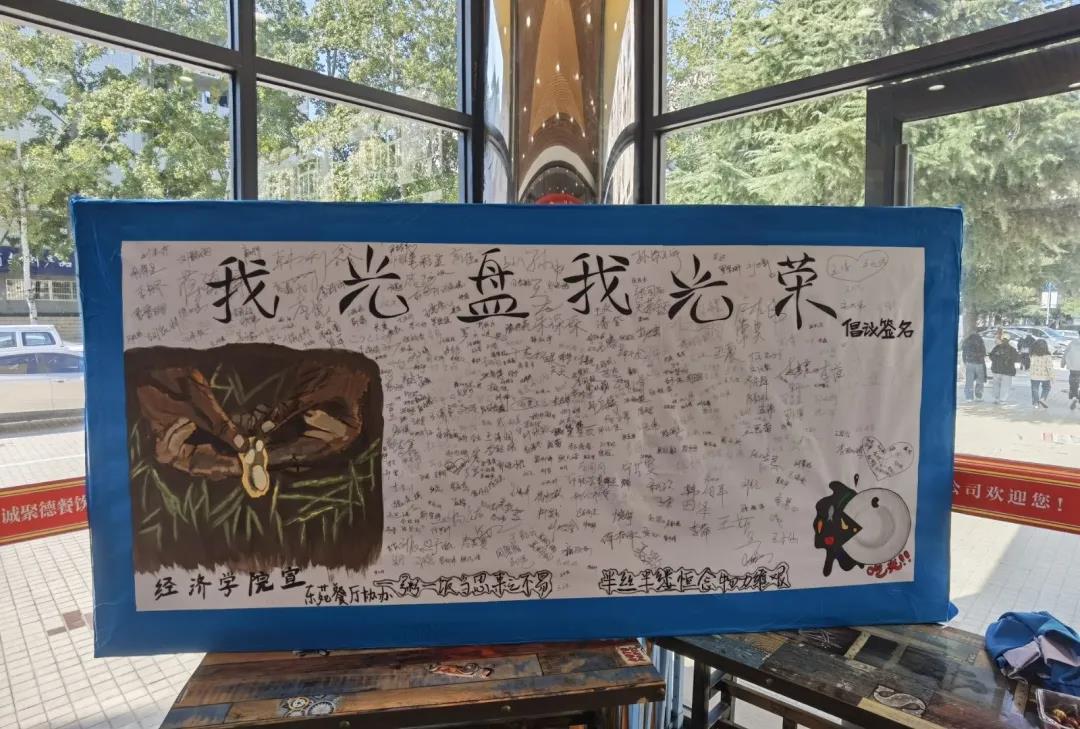 "光盘行动"倡导厉行勤俭节约,反对铺张浪费,呼吁大家吃光盘中餐,餐餐不剩饭!我院于三餐门口设立桌椅及签名板,同学们自愿加入光盘行动,拍下光盘照片,凭光盘照片参与签名活动。同学们积极响应号召,踊跃参与活动,真正做到爱粮节粮的践行者、文明就餐的倡导者、传承美德的推动者。