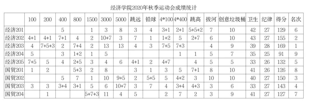 比赛结束后,根据各班综合表现评选出团体总分奖、精神文明奖等奖项,其中经济203班荣获团体总分第一名!环球网页版登录入口2020年秋季运动会就此落下帷幕。