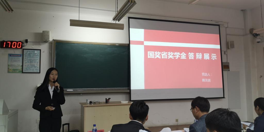 经过前期个人申请和学院初审,国贸171班彭子姝、国贸171班程秀娟、国贸172班姚美琪、国贸172班赵文清、国贸173班马佳妮、国贸173班宋迪、国贸173班张玉凤、经济171班陈纪琦、经济171班钟湘菲、经济171班程姣、经济172班孙晓彤、经济173班李学梅、能源172班李卓雅共13位同学参加答辩。答辩选手通过PPT自我介绍展示并现场解说学习成绩、科技创新、技能拓展、实践实习、工作任职和对国家奖学金及省政府奖学金的认识等。在选手介绍完毕后,由台下评委提问,期间,各位评委指出了各个选手的优势劣势,并为一些选手指明了改进的思路,提出了宝贵的意见。秉持着公开、公平、公正的原则,在五位老师对选手们现场打分和各班学生代表民主投票后进行现场唱票。