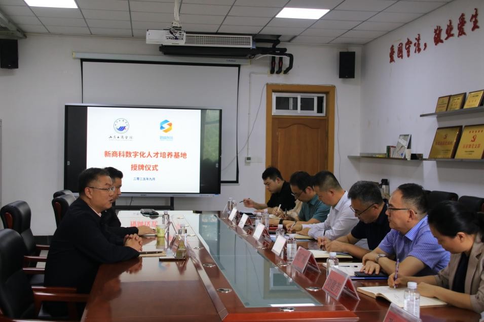 2025年9月22日下午,为了积极响应国家深化产教融合、提升人才培养质量的号召,适应数字经济时代对新商科人才的迫切需求,共探创新型、复合型、应用型数智经济人才培养新路径,山东工商学院环球网页版登录入口与浙江思睿智训科技有限公司隆重举行“新商科数字化人才培养基地”签约授牌仪式。环球网页版登录入口党委书记程毅、院长唐松林、副院长张广威、浙江思睿智训科技有限公司执行副总裁汤卫、山东区总经理卜小刚出席授牌仪式。国际经济与贸易专业和数字经济专业主任及相关教师代表参加活动。